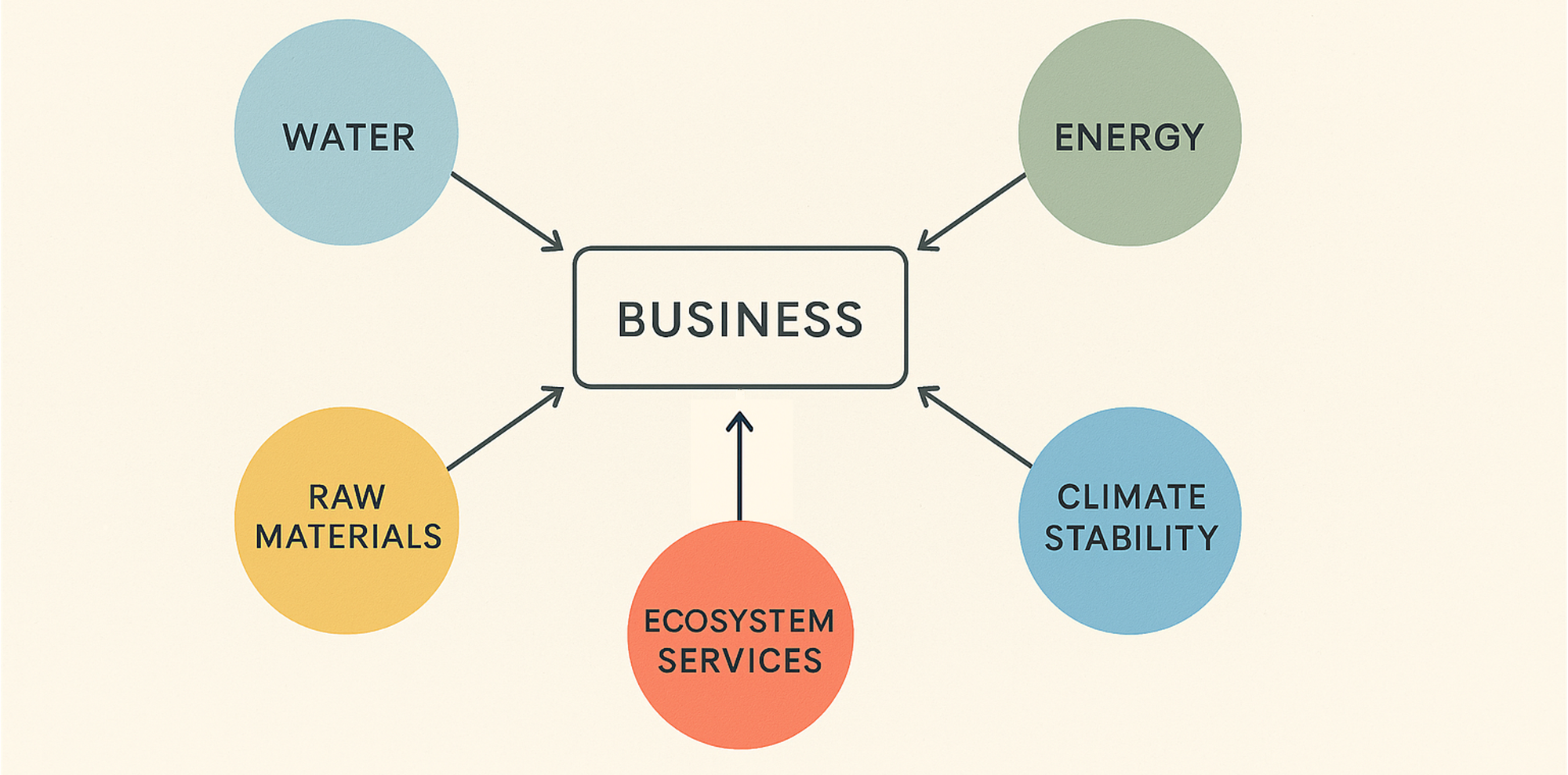 What natural systems did their business actually rely on? Water, obviously. But also: stable regional climate for consistent operations, healthy ecosystems that filtered and purified water upstream, soil stability around their facilities, even local biodiversity that indicated overall ecosystem health.